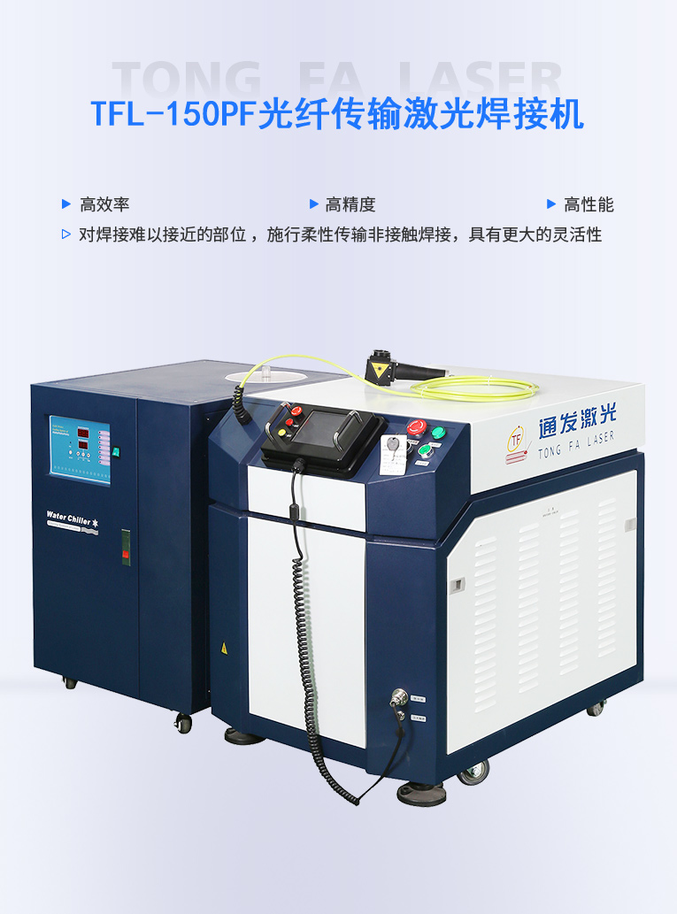 通發激光TFL-150PF光纖激光焊接機,采用能量反饋控制模式,能量較穩定,光纖傳輸光束質量好,適合0.5mm以下金屬不銹鋼板材的精密激光焊接,是批量五金產品中小功率焊接專用機型。